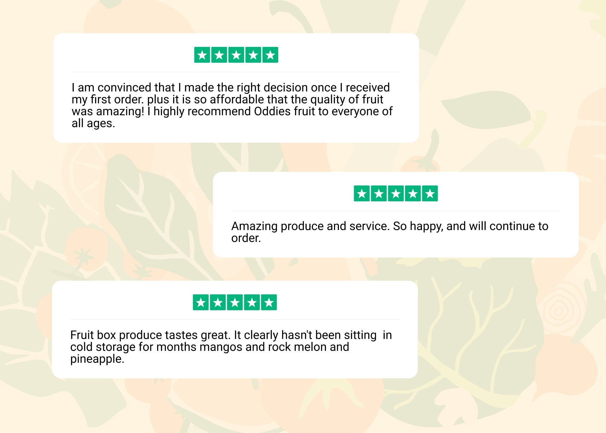 Tuesday 11:55 pm AEST and you won’t be charged for that week’s box. If something wasn’t right with a past box, email us at help@oddies.au—we’d love the chance to make it right before you leave us.